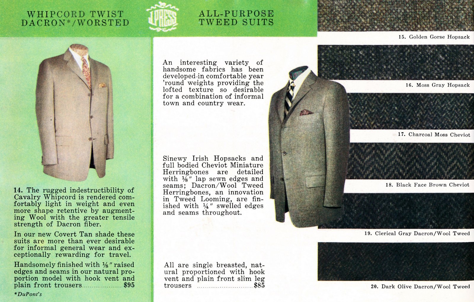 There are also more flannel trouser offerings, including dark blue and a brownish olive, plus a whole kennel of Shaggy Dogs — the most colors in many a year, and available in a slim cut as well as regular, for all you skinny puppies out there.
