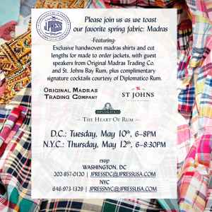SJ_Jpress invite (1)-min (1) May 5, 2022 Related Posts:It Has Now Been Done Properly: J. Press Releases…George Washington and the Gentlemanly IdealIconic Summer Style at The Kennedy CompoundYale Daily News Features Ivy Style EditorLessons from The DigIvy Style interview with Robert Squillaro, executive…The Greatest Ivy Style Christmas Movie of All Time
