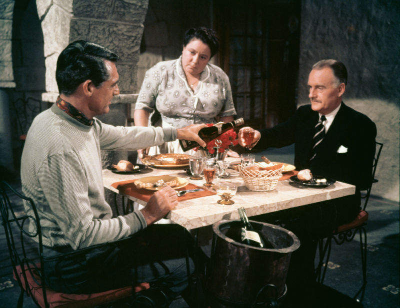 A great example of the Navy and white bar stripe is the scene in ‘To Catch a Thief’ when Cary Grant hosts John Williams for lunch at his hillside home.