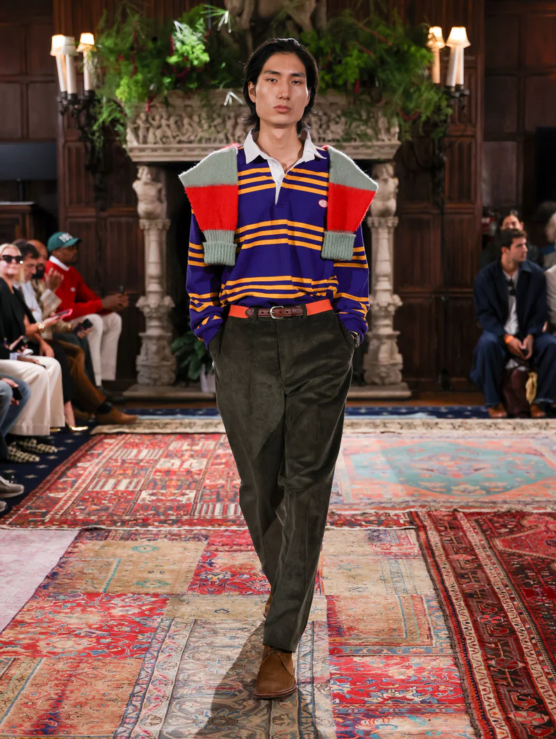 From the Harvard-Yale Game to the World Series, my sports fandom spans all levels in autumn. Being part British, the Grand Final of Super League rugby and the start of Premiership Rugby are my two favorite perennials. Honoring that, allow me to rhapsodize over my go-to weekend garment of the season: The classic rugby shirt. GQ reported that this “prep-adjacent staple” dominated at London and New York Fashion Week. Though that’s neither here nor there for the trend-resistant, it certainly proves how stylistically versatile this collared jersey really is.