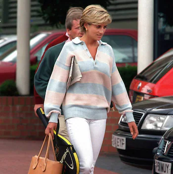 Princess Di, 1997. Great haircut and pearl earrings! 😍 And lovely sweater, too.