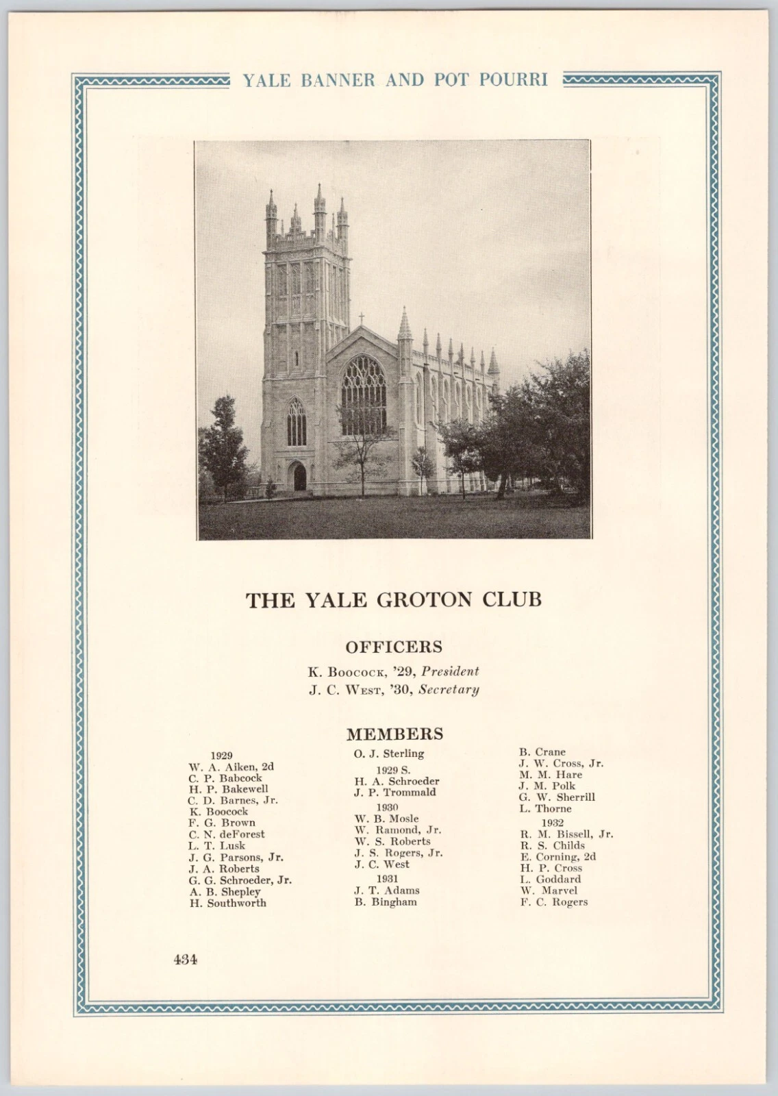 Groton School Club at Yale University in the Yale Banner & Pot Pourri (1929)