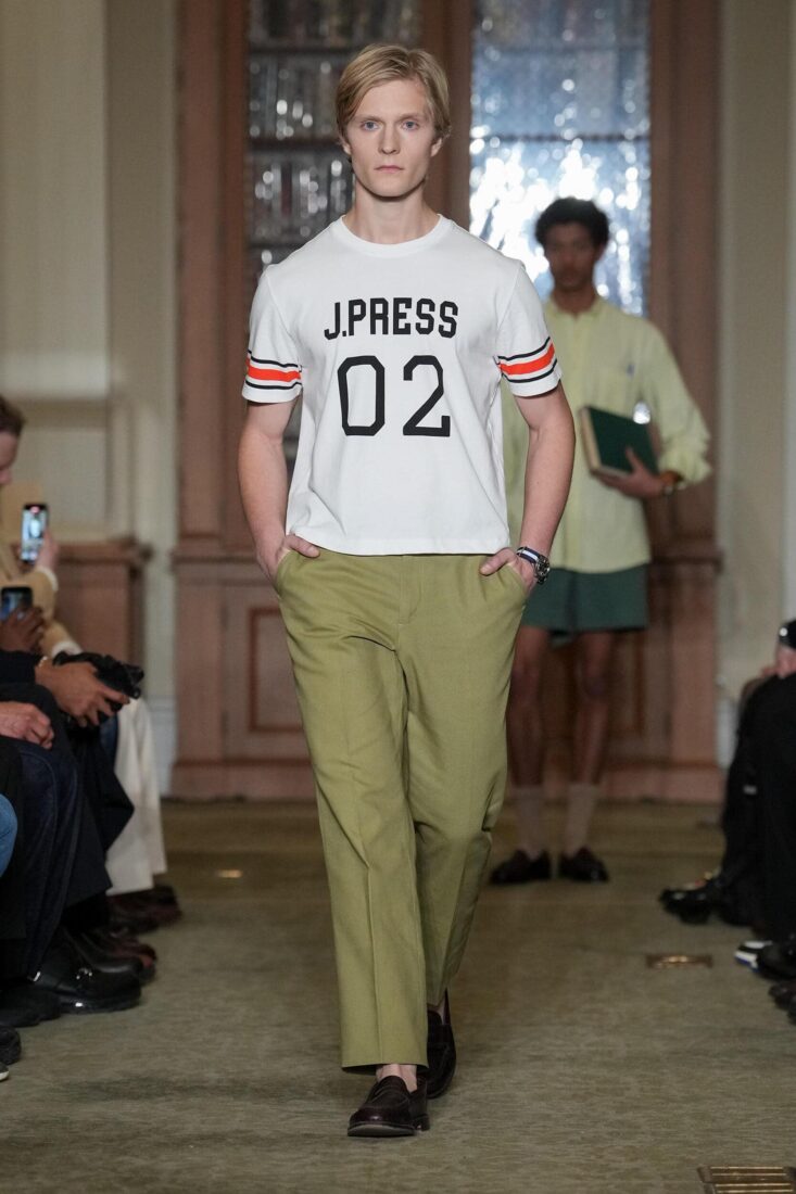 That 2015 blurb proved prophetic, as the during the recently completed New York Fashion Week, the folks at J. Press built their entire Spring 2026 runway show around classic shots from Take Ivy, and even introduced some new products based on some notable photos from the book, including a J. Press version of a white Princeton graduation year t-shirt, complete with black and orange stripes on the sleeves. I had a three-quarters sleeve version of this, reading “Cornell 78”, obtained during my sister’s time studying and playing hockey far above Cayuga’s waters.