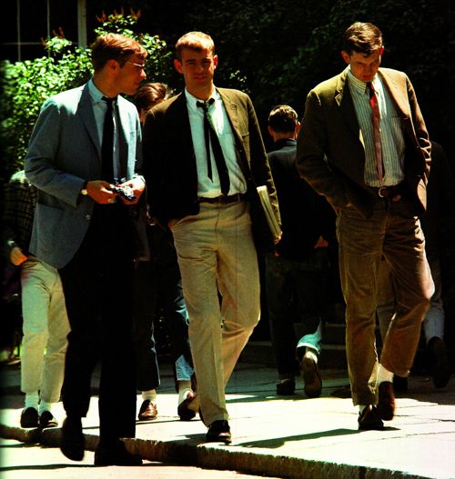 Another, above a photo of three Dartmouth students, one with a Zeta Psi frat t-shirt, off-white chinos and black low-cut Chuck Taylor sneakers, opines that “rational-minded Ivy Leaguers don’t bother looking neat for classes. They feel that they can get away dressing casually as long as they don’t look too shabby.”