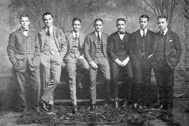 Interesting button point on those two wearing the too-short double breasted suits.