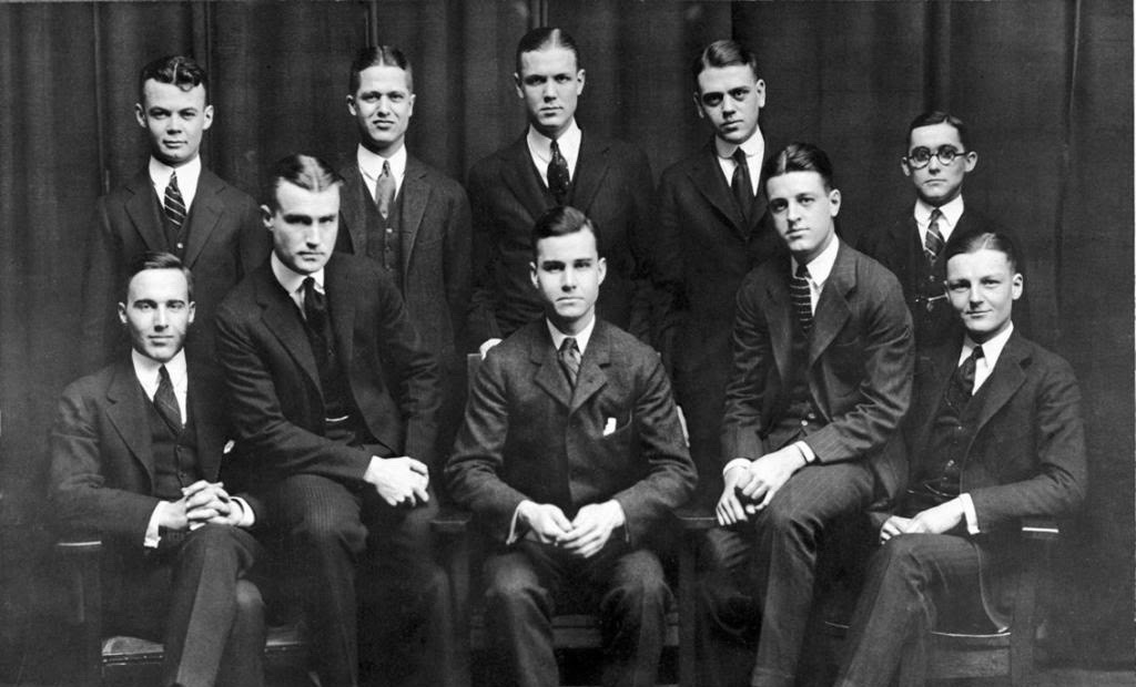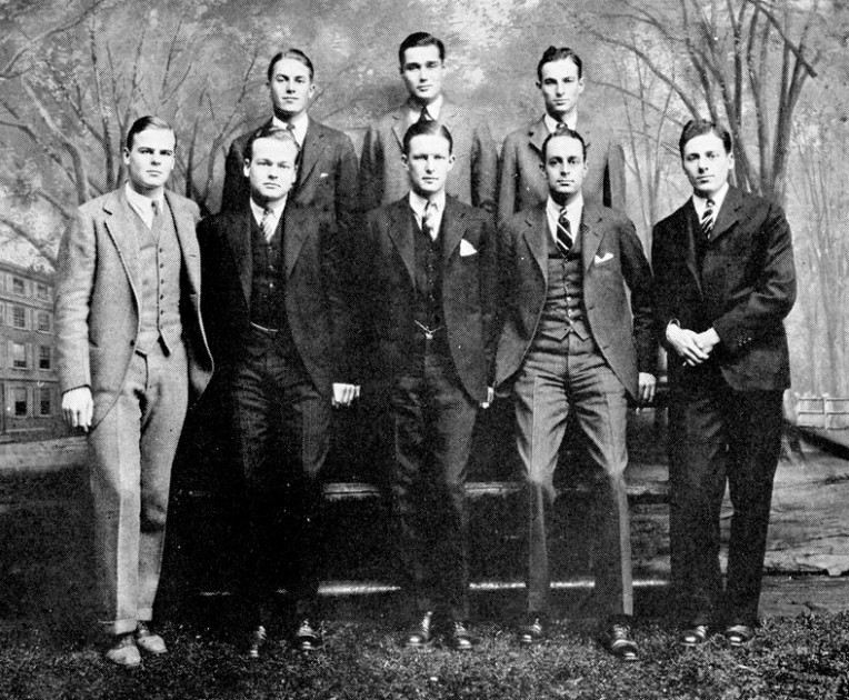 A three-piece suit, custom tailored in tweed from the British Isles, made an Ivy Leaguer virtually indistinguishable from his contemporaries at Oxbridge. If you peruse any Ivy League yearbook from the early 20th century, you will find students and faculty members consistently dressed the same way. They are wearing an early version of the sack suit with natural shoulders and a 3/2 roll, similar to the later iterations of this same look on these campuses decades later. The key difference: these suits include a waistcoat, or vest.